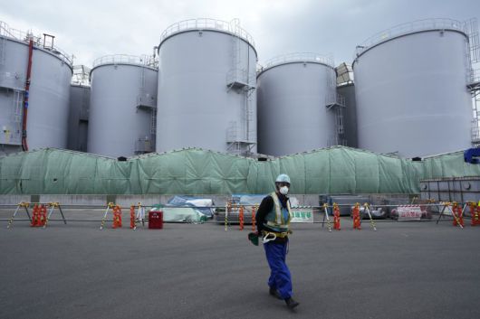 지난해 3월3일 도쿄전력이 운영하는 일본 후쿠시마현 후쿠시마 제1 원자력발전소의 오염수 보관 탱크 앞을 한 근로자가 지나가고 있다. 뉴시스 |