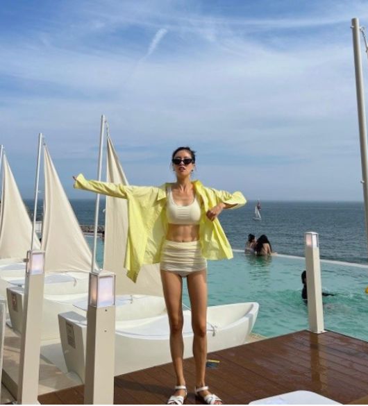 공개된 사진에는 현숙이 아이보리색 수영복을 입고 휴가를 즐기고 있는 모습이 담겼다.