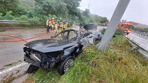 당시 뒤따라오던 승용차 운전자가 사고를 목격해 경찰에 신고했다. 그는 연기로 가득 찬 차량에서 정신을 잃은 A씨를 구조한 것으로 알려졌다.