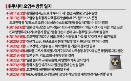 5일 니혼게이자이신문(니케이)은 일본 정부가 다음 달 후쿠시마 제1원전 오염수를 방류하는 방안을 검토 중이라고 전했다. 이달 중에 후쿠시마와 인접 지역 주민들에 대한 설명회를 개최하고 한국과 중국 등 인접국의 동의를 구한 다음 8월에 방류를 실시한다는 계획이다.