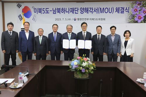 (서울=연합뉴스) 김지연 기자 = 통일부 산하 남북하나재단과 이북5도위원회는 5일 북한이탈주민 정착지원 협력을 위한 업무협약(MOU)을 체결했다.