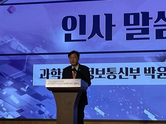 박윤규 과학기술정보통신부 2차관이 5일 서울 롯데호텔월드에서 열린 에이블 발대식에서 인사말을 하고 있다.(사진=임유경 기자) |