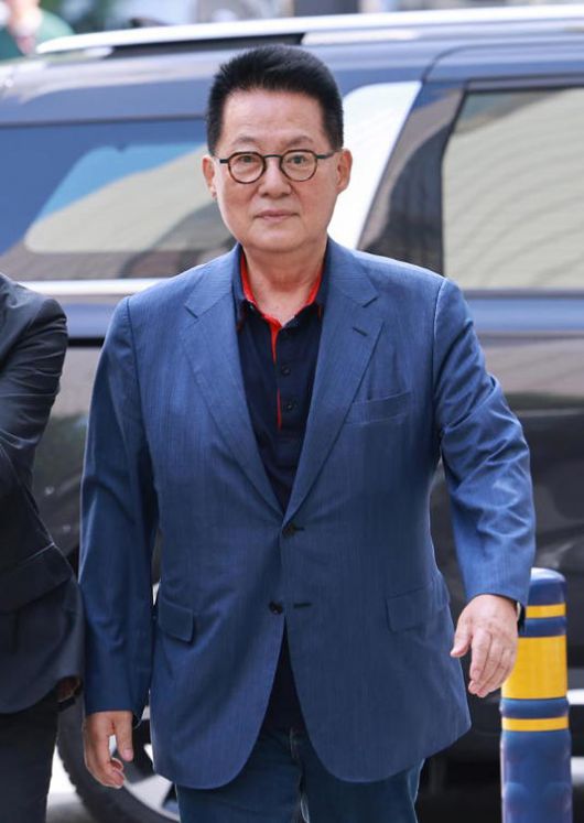 재임 시절 채용 비리 의혹으로 수사를 받는 박지원 전 국가정보원장이 1일 오전 서울 마포구 반부패·공공범죄수사대에 출석하고 있다.[연합] |