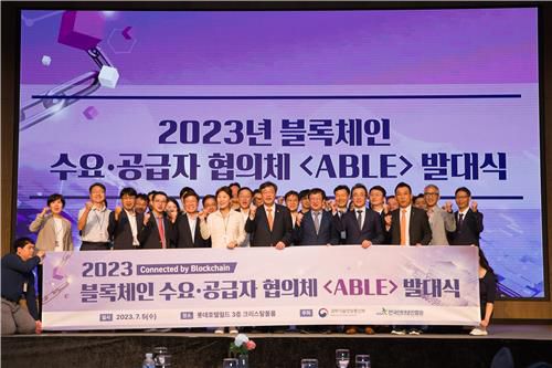(서울=연합뉴스) 조성미 기자 = 과학기술정보통신부는 5일 서울 송파구 롯데호텔월드에서 민·관 협업에 기반해 블록체인 산업 생태계를 활성화하기 위한 블록체인 수요·공급자 협의체 '에이블'(ABLE) 발대식을 열었다.