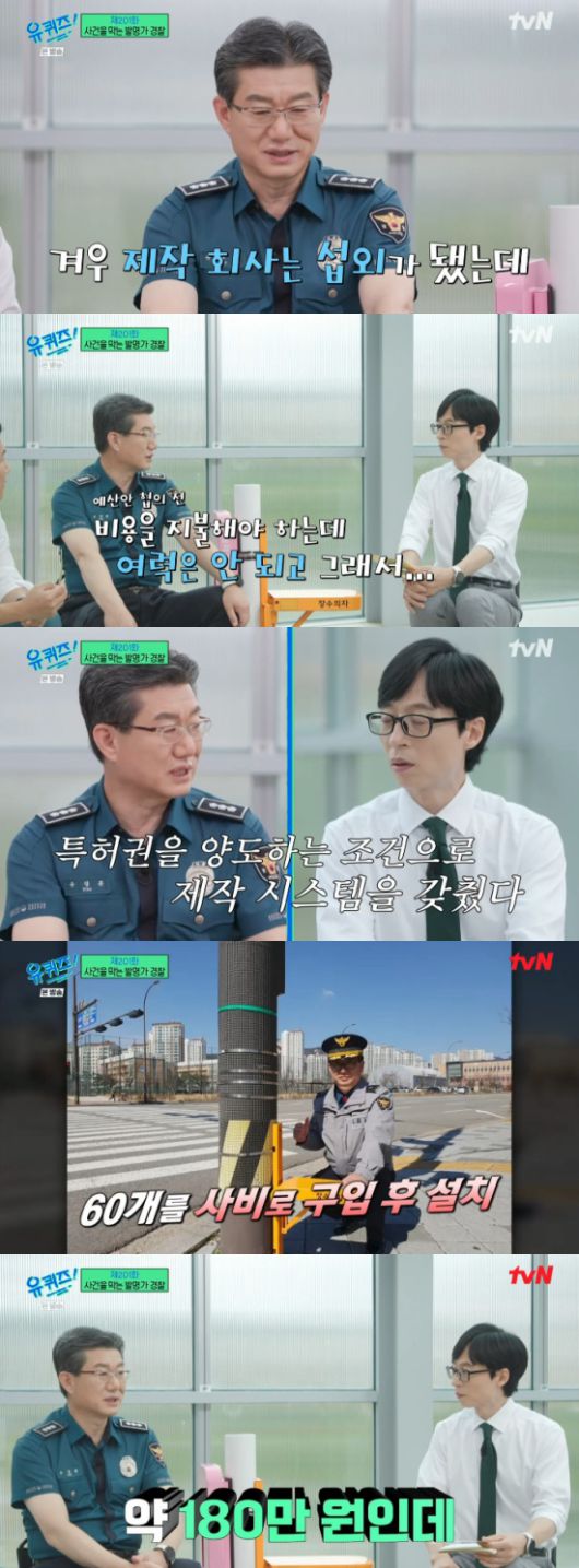유창훈 경정은 "(비용을) 지불을 해야 하는데 여력은 못 되고 특허권을 양도하는 조건으로 제작 시스템을 갖췄다. 설치를 해야 하는데 절차를 밟으려면 너무 시간도 걸리고 지금 이 순간에도 어떤 시민이 횡단보도 상에서 돌아가실 수 있다' 이런 조급증이 나서 한 60개를 싸게 구입했다"라며 고백했다.