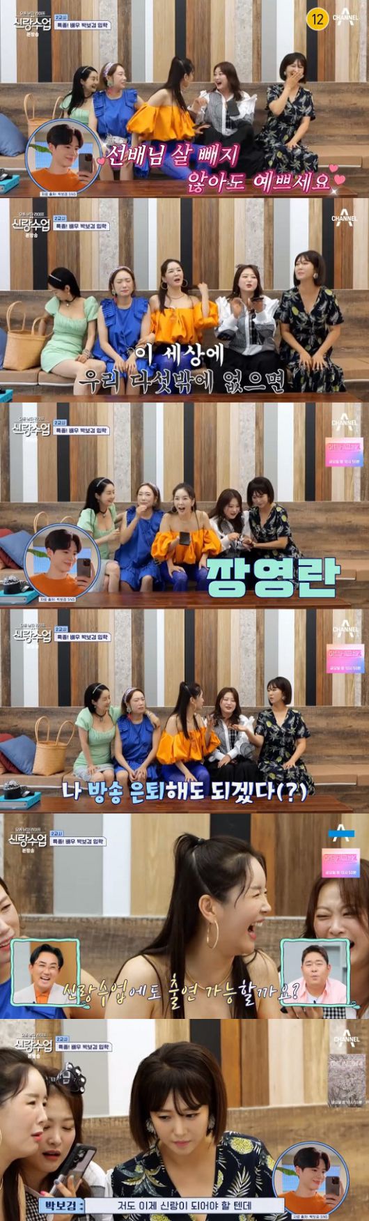 5일 방송된 채널A '요즘 남자 라이프-신랑수업(이하 '신랑수업')' 71회에서는 앞선 1차 회동을 통해 세간을 떠들썩하게 만들었던 '뜨거운 주부들' 장영란, 정경미, 심진화, 조향기가 다시 한번 뭉치는 모습이 펼쳐졌다.