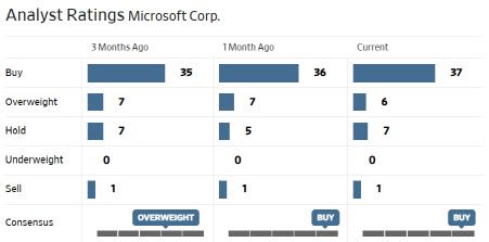 한편 월가에서 마이크로소프트에 대해 투자의견을 제시한 애널리스트는 총 51명으로 이중 43명(84.3%)이 매수(비중확대 및 시장수익률 상회 등 포함) 의견을 유지하고 있다. 평균 목표주가는 345.84달러로 이날 종가 338.15달러보다 2.2% 높다. 올 들어 마이크로소프트 주가는 41% 급등한 상황이다.