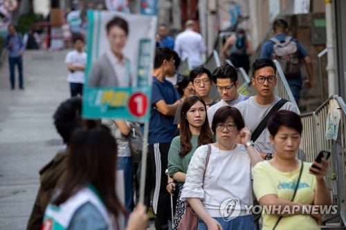 2019년 11월24일 홍콩 구의회 선거 투표 대기줄 |
