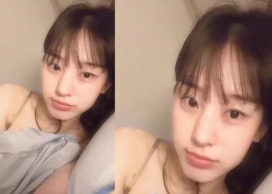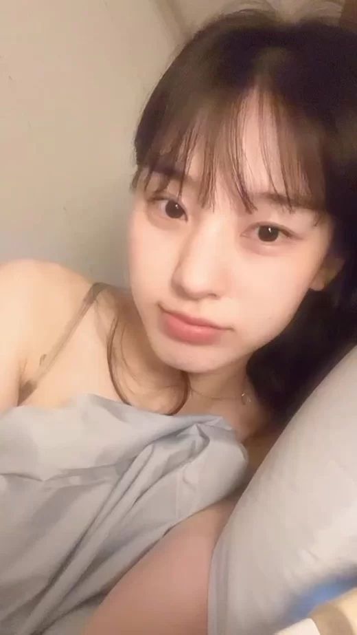 수수한 민낯의 노제가 침대 위로 보이는 곳에서 셀프 영상을 촬영하고 있다.