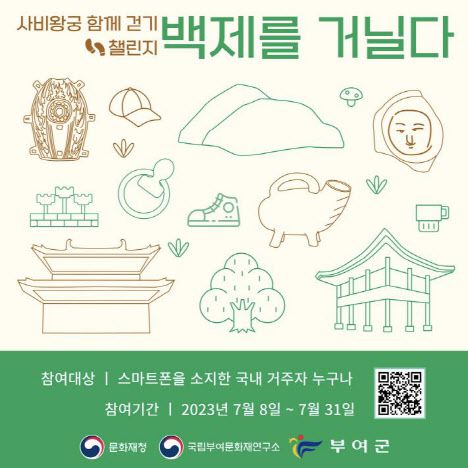 이번 행사는 세계유산인 백제역사유적지구의 역사적·문화적 중요성을 확산하기 위해 매년 선보이는 ‘백제문화유산주간(7월 8~14일)’ 연계 행사다. 건강관리 기반(헬스케어 플랫폼) 앱 ‘워크온’을 이용해 도장찍기 여행(스탬프 투어) 방식으로 진행된다.