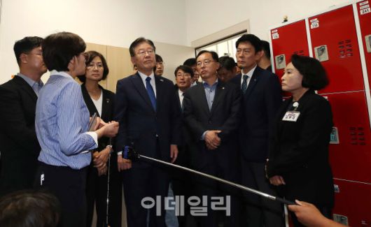 [포토]이재명 민주당 대표, 대형마트 사원 휴게실 답사