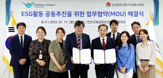 [서울=뉴시스] 홍찬선 기자 = 인천국제공항에서 항공보안을 담당하는 인천국제공항보안㈜는 지난 11일 인천 중구자원봉사센터와 ESG(환경·사회·지배구조)활동 공동 추진을 위한 업무협약을 체결했다고 12일 밝혔다.