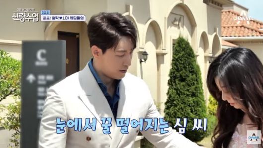 아이보리색 슈트를 입고 등장한 심형탁은 연예인 비주얼로 눈길을 끌었다.