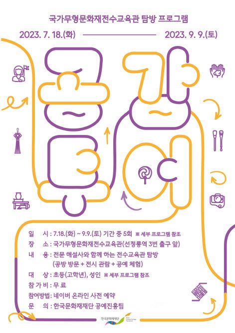 한국문화재재단은 오는 18일부터 9월 9일까지 총 5회에 걸쳐 ‘공감투어’를 운영한다. 서울 강남구 국가무형문화재전수교육관에서 전문해설사와 함께하는 탐방 프로그램이다.
