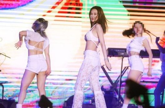 안무 도중에 레이스 바지 가운데가 찢어져 엉덩이가 관객에게 보여진 것이다.