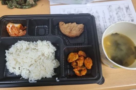 두 개의 식판 모두 김치를 포함한 반찬은 세 가지뿐이었는데, 국이 없거나 다짐육을 반으로 잘라 제공하는 등 성인 남성 1명이 먹기에는 턱없이 모자란 양이었다.