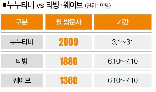 웹 트래픽 분석 사이트 시밀러웹에 따르면, 누누티비의 접속 주소 중 하나인 'noon oo28.tv'의 3월 방문자 수는 2900만명에 달했습니다. 국내 OTT 서비스인 티빙(tving)과 웨이브(weave)의 6월 10일~7월 10일 한달 방문자가 각각 1880만명, 1360만명이었다는 점에 비춰보면, 누누티비에 얼마나 많은 사람이 몰렸는지 엿볼 수 있습니다.