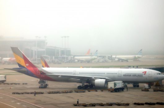 임금협상을 두고 사측과 입장차를 좁히지 못한 아시아나항공조종사노조가 오는 24일부터 파업에 돌입한다고 14일 밝혔다. 아시아나항공조종사노조에 따르면 전날까지 이뤄진 네차례 임금협상이 결렬됨에 따라 노조는 이날부터 2차 쟁의행위에 나서고, 24일부터 파업에 나선다. 사진은 14일 오전 인천국제공항 제1터미널에 계류 중인 아시아나항공 여객기. |