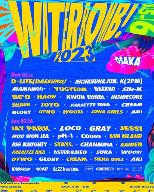 이번 일본 오사카 워터밤에는 투피엠 닉쿤 준케이, 빅뱅 출신 대성, 권은비, 스테이씨, 빅나티, 마마무+, 비오, 식케이, 갓세븐 유겸, 박재범, 로꼬, 그레이, 제시 등이 출연할 예정이었다.