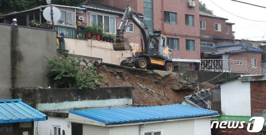 복구 작업을 바라보던 인근 주민 A씨는 "과거에 비가 내렸을 때도 인근 축대가 무너진 적이 있다"며 "재개발구역이라 무너졌다고 생각했다"고 말했다.