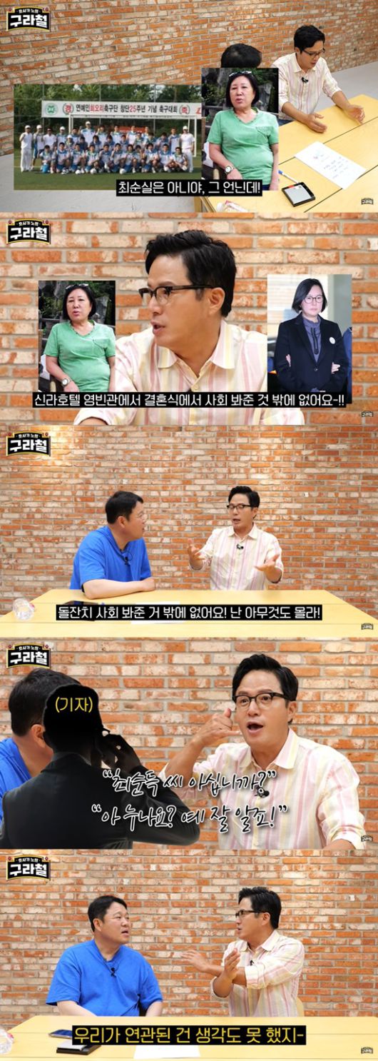이에 조영구는 "우리 회오리 축구단에 최순실의 언니 최순득 씨가 고문으로 오셨다. 그 분이 술을 좋아하고 잘 어울린다. 그런데 축구단에 왔으니까 우리하고 잘 어울릴 시간이 없었다"고 설명했다.