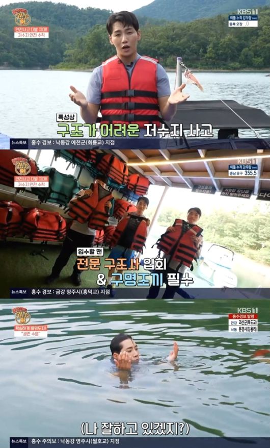 이어 박군은 사고 상황에서 사용할 수 있는 생존 수영을 소개했다. 생존 수영은 물 위에서 최소한의 체력으로 구조대가 올 때까지 버티기 위한 수영법으로 정확하게 호흡하는 방법과 폐에 공기를 채워 안정적인 자세로 물 위에 떠 있기, 안전하게 육지까지 이동할 수 있는 수영법을 직접 배우며 생명을 지키는 방법을 전했다.