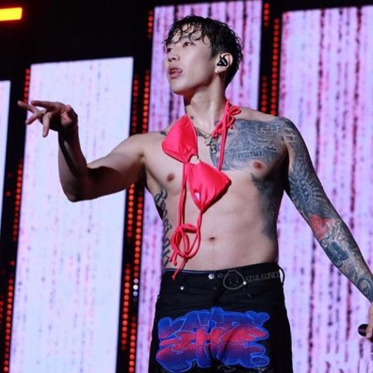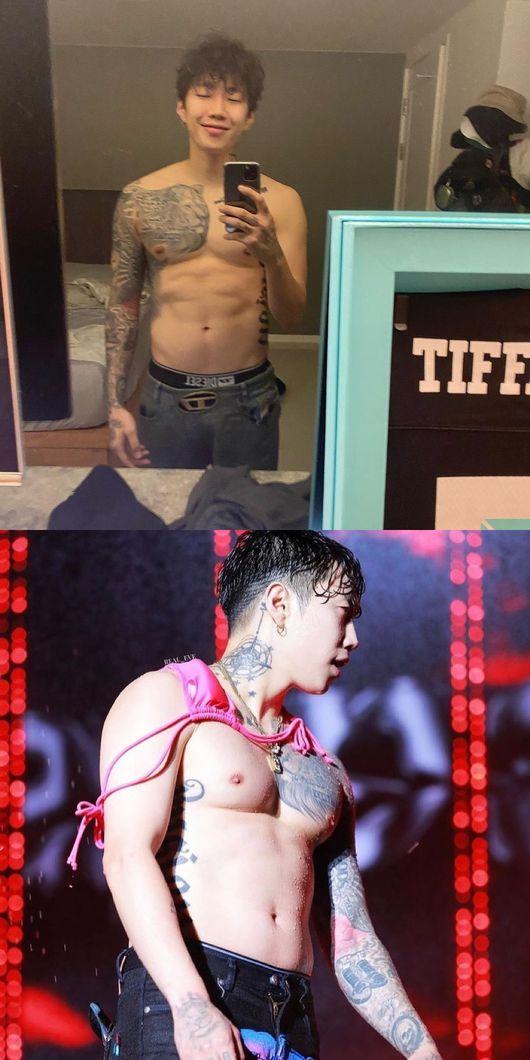 공개된 사진은 상의를 탈의한 박재범의 모습. 박재범은 탄탄한 근육질 몸매를 한 채 포즈를 취하고 있다. 무대 위에서 찍은 사진엔 여성 속옷을 목에 건채 춤을 추는 박재범의 모습이 담겨있. 박재범의 핫바디와 남다른 분위기에 보는 팬들의 시선이 집중됐다.
