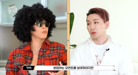가비는 화려한 게스트에 맞춰 가발과 선글라스 핫팬츠로 시선을 사로잡았다.