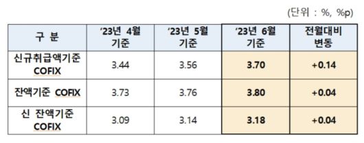 6월 신규 코픽스 3.70%…전월대비 0.14%p↑