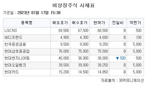 17일 비상장 주식은 2일 연속 하락했다.