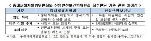 중대재해처벌법과 산업안전보건법의 차이점 |