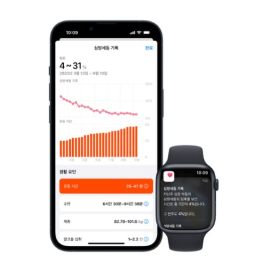 심방세동 진단을 받은 사용자는 애플워치 심방세동 기록 기능을 사용해 심방세동 증상이 발생하는 빈도에 대한 추정치 등을 포함한 중요한 정보를 확인할 수 있다.