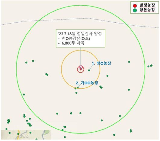 강원 철원 갈말읍에서 아프리카돼지열병이 발생, 반경 10㎞ 이내에 방역대가 설정됐다. 강원특별자치도 제공 |