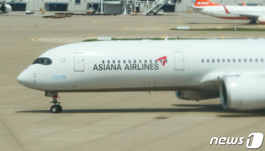 (인천공항=뉴스1) 허경 기자 = 아시아나항공은 19일 조종사 노동조합과 제 26차 교섭을 갖고 기본급 2.5%, 비행수당 2.5% 인상에 합의했다고 밝혔다. 기본급 및 비행수당 인상 외에 안전장려금 50% 지급, 복지 혜택 확대 등이 포함됐다. 최종 합의는 2주간의 설명회와 찬반투표를 거친다. 조종사 노조도 이날 모든 쟁의행위를 잠정 중단하기로 했다. 노조는 지난달 7일부터 비행기를 지연시키는 준법투쟁에 돌입한 바 있다. 사진은 이날 인천국제공항 1터미널 활주로에 대기중인 아시아나항공 항공기. 2023.7.19/뉴스1