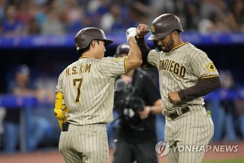 (엑스포츠뉴스 김지수 기자) 미국 메이저리그 샌디에이고 파드리스의 김하성(28)이 류현진(36)의 소속팀 토론토 블루제이스를 상대로 안타를 생산했다.