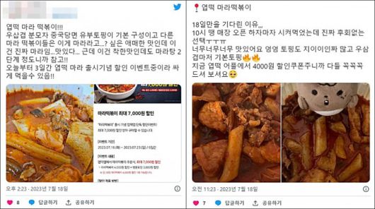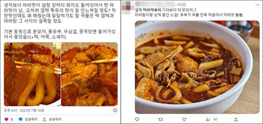 아래는 SNS와 온라인 커뮤니티에서 주목받은 마라떡볶이 후기들이다.