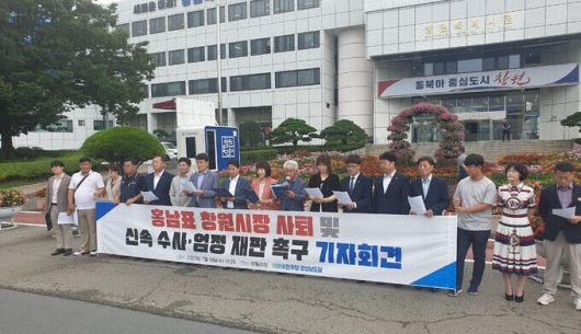 20일 지역 정가에 따르면 전날 더불어민주당 경남도당은 창원시청 앞에서 홍남표 창원시장의 대시민 사과와 사퇴를 촉구하는 기자회견을 열었다.
