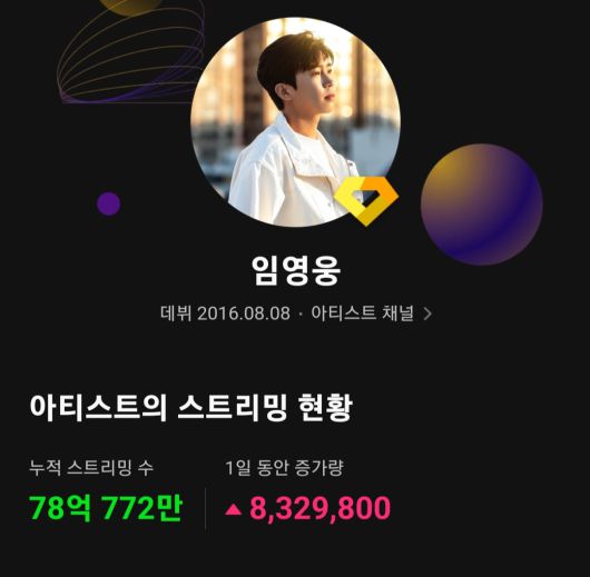 특히 임영웅은 7월 20일 기준, 이미 78억회 스트리밍을 돌파하면서 골드클럽을 이미 넘어섰고 다이아 클럽 달성을 위해 초고속으로 달리고 있다.