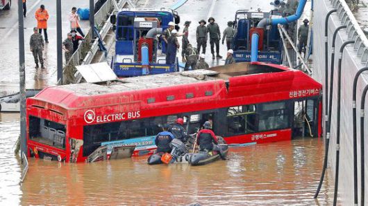 지난 16일 미호천 제방 유실로 침수된 충북 청주시 오송읍 궁평2지하차도에서 군과 소방당국이 구조작업을 하고 있다. 뉴스1 |