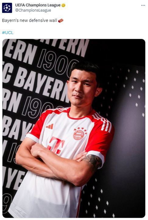 챔피언스리그는 20일(한국시간) 공식 SNS를 통해 "바이에른 뮌헨의 새로운 수비벽"이라는 글과 함께 김민재의 뮌헨 입단 사진을 게시했다.
