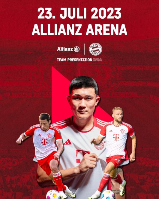 바이에른 뮌헨은 21일(한국시간) 공식 SNS를 통해 팀 프레젠테이션 포스터를 공개했다. 뮌헨은 오는 23일 팀 프레젠이션을 진행한 뒤 본격적인 프리시즌을 시작한다. 이 자리에서 뮌헨 새 얼굴들을 소개할 예정이다. 김민재를 포함해 하파엘 게헤이루, 콘라드 라이메르 등이 대상자다. 포스터에도 김민재와 함께 하파엘 게헤이루, 콘라드 라이메르가 등장했다.