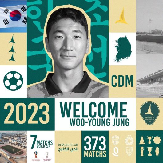 이어 "정우영은 알사드와 함께 카타르 리그 3회 우승, 카타르 컵, 카타르 왕세자 컵 1회 우승을 경험했으며 2018년 2022년 두 차례에 걸친 월드컵 출전을 포함해 대한민국 국가대표로 72경기에 출전했다"고 간략하게 소개했다.