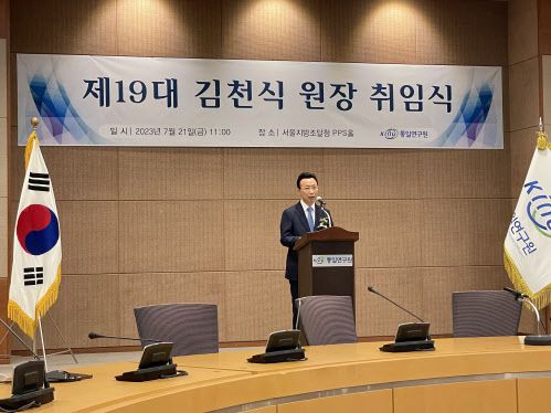 김천식 신임 통일연구원장은 취임 일성으로 남북통일을 위한 최고의 통일·북한 연구기관이 되자고 포부를 밝혔다. 통일연구원은 21일 오전 11시 서울조달청사 별관 PPS홀에서 제19대 김 원장의 취임식을 개최했다.