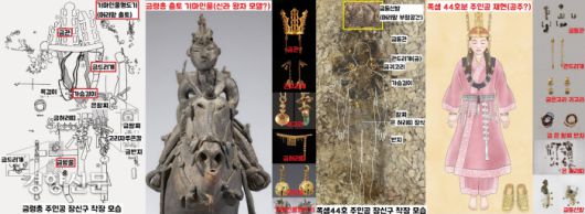 쪽샘44호분의 주인공은 유물조합이나 순장유무 등으로 가늠해보면 5세기 말의 공주급으로 추정된다. 그 경우 소지왕(재위 479~500) 연간의 공주가 유력한 후보로 꼽힌다. |국립경주문화재연구소 제공 |