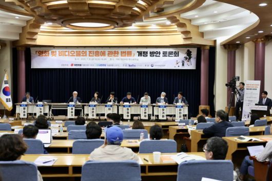 영화진흥위원회가 마련한 '영화 및 비디오물의 진흥에 관한 법률(이하 영비법)' 개정 방안 토론회가 국회의원회관에서 열리고 있다. 사진=영화진흥위원회 제공 |