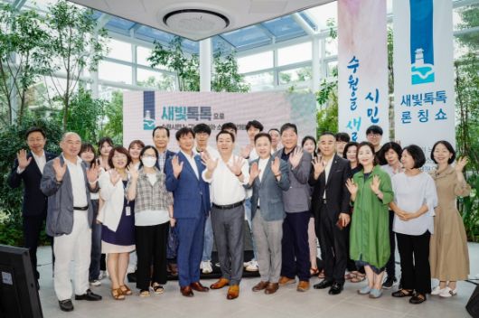 이재준 수원시장(가운데) 등이 새빛톡톡 론칭행사에서 함께하고 있다. 수원시 제공 |