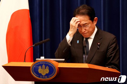 6월 13일 일본 도쿄 총리실에서 기시다 후미오(岸田文雄) 일본 총리가 언론의 질문에 이마에 손을 짚고 있다. 2023.06.13/ ⓒ 로이터=뉴스1 ⓒ News1 윤주영 기자 |