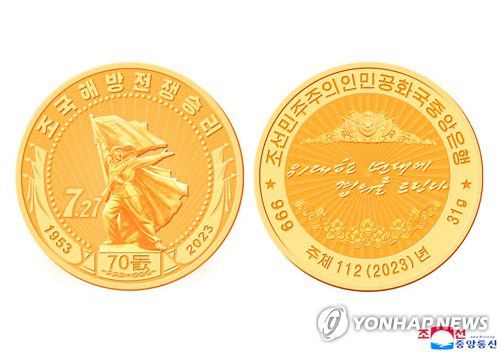 (평양 조선중앙통신=연합뉴스) 북한이 조국해방전쟁승리 70돌을 맞아 기념주화를 발행한다고 조선중앙통신이 25일 보도했다. 2023.7.25