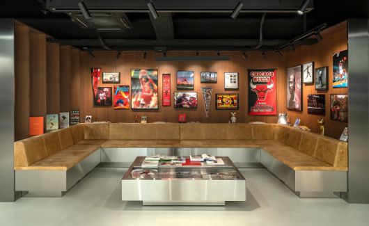 뿐만 아니라 나만의 조던 제품을 커스텀하거나 스니커즈 관리와 보존에 대한 안내 및 교육 튜토리얼을 받아볼 수 있는 워크샵 공간, 마이클 조던의 사진부터 만화책 <슬램덩크> 원작 전권 등이 있는 더라운지 공간도 함께 마련해 단순히 제품을 판매하는 매장이 아닌, 조던 브랜드와 농구에 대한 소통이 이루어지는 공간으로 꾸며냈다.