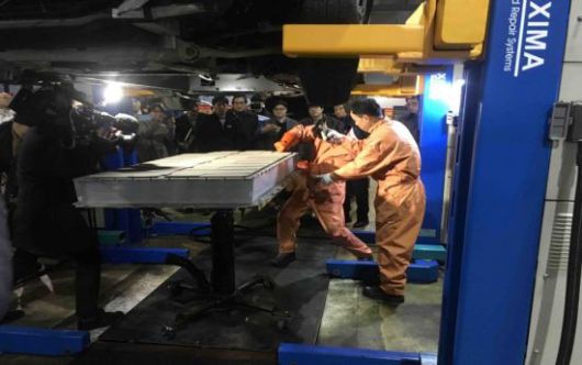 전기차 배터리 해체 작업하는 모습 [이미지출처=환경부] |
